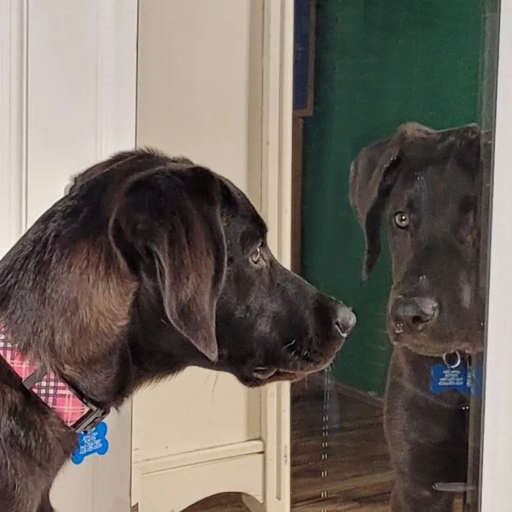 A beautiful gal looking at her beautiful face. Her chocolate undertones were starting to shine.